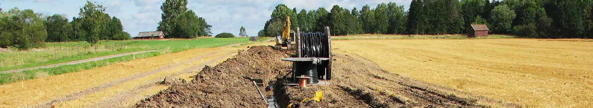 Vårt elnät finns både ovan och under mark som luftledningar och markkablar. Om du arbetar nära våra ledningar och råkar skada dem kan det innebära livsfara, både för dig själv och andra i närheten. Det kan också leda till att du blir ersättningsskyldig för skador på elnätet och annan egendom som påverkas vid ett eventuellt strömavbrott.
