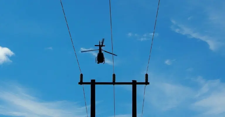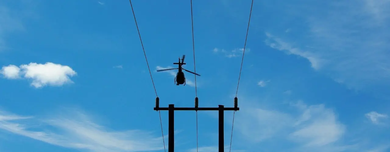 Vi använder oss av både drönare och helikoptrar för att snabbt och effektivt få en överblick över ledningsnäten och upptäcka fel vi inte ser från marken.